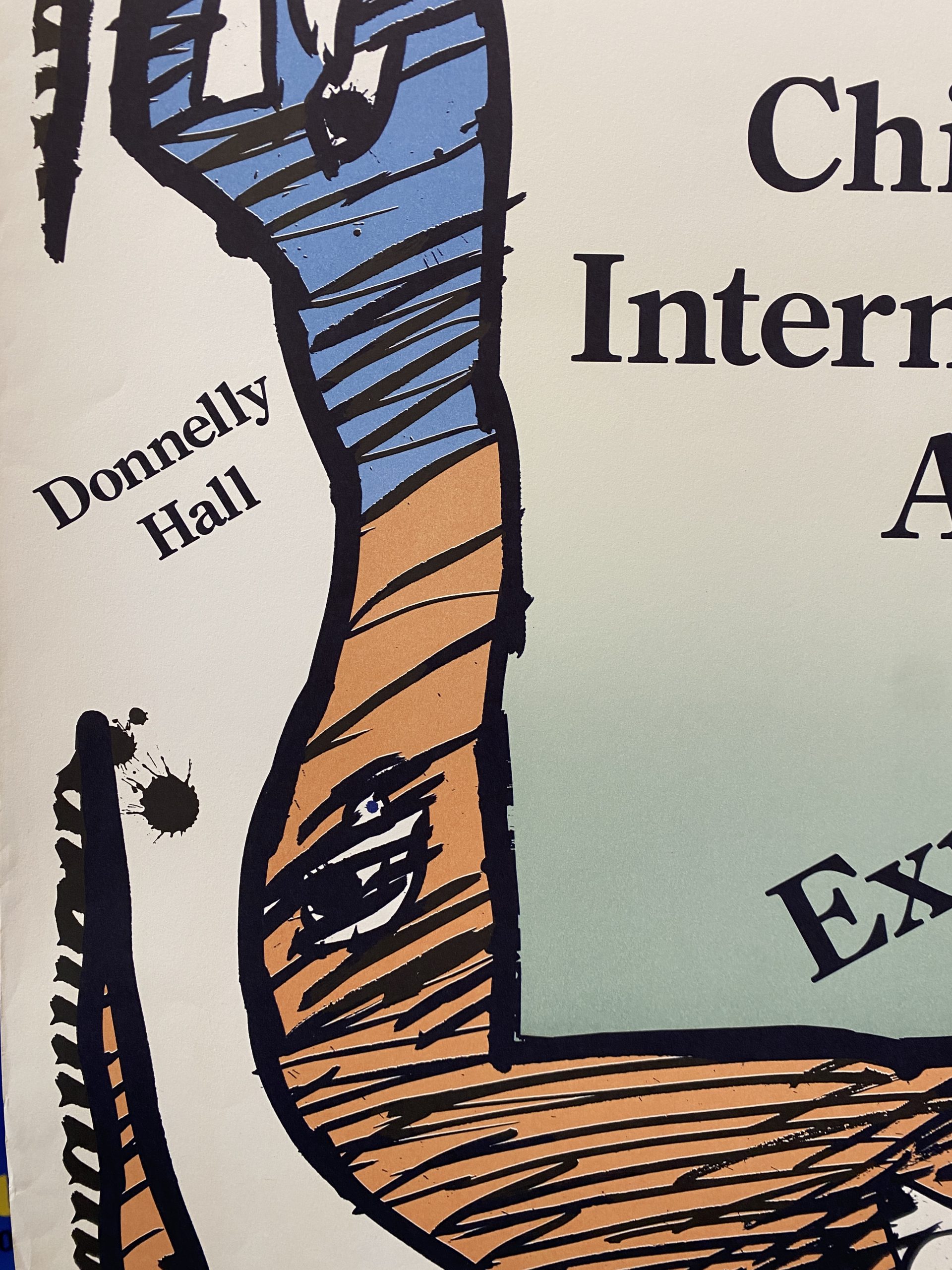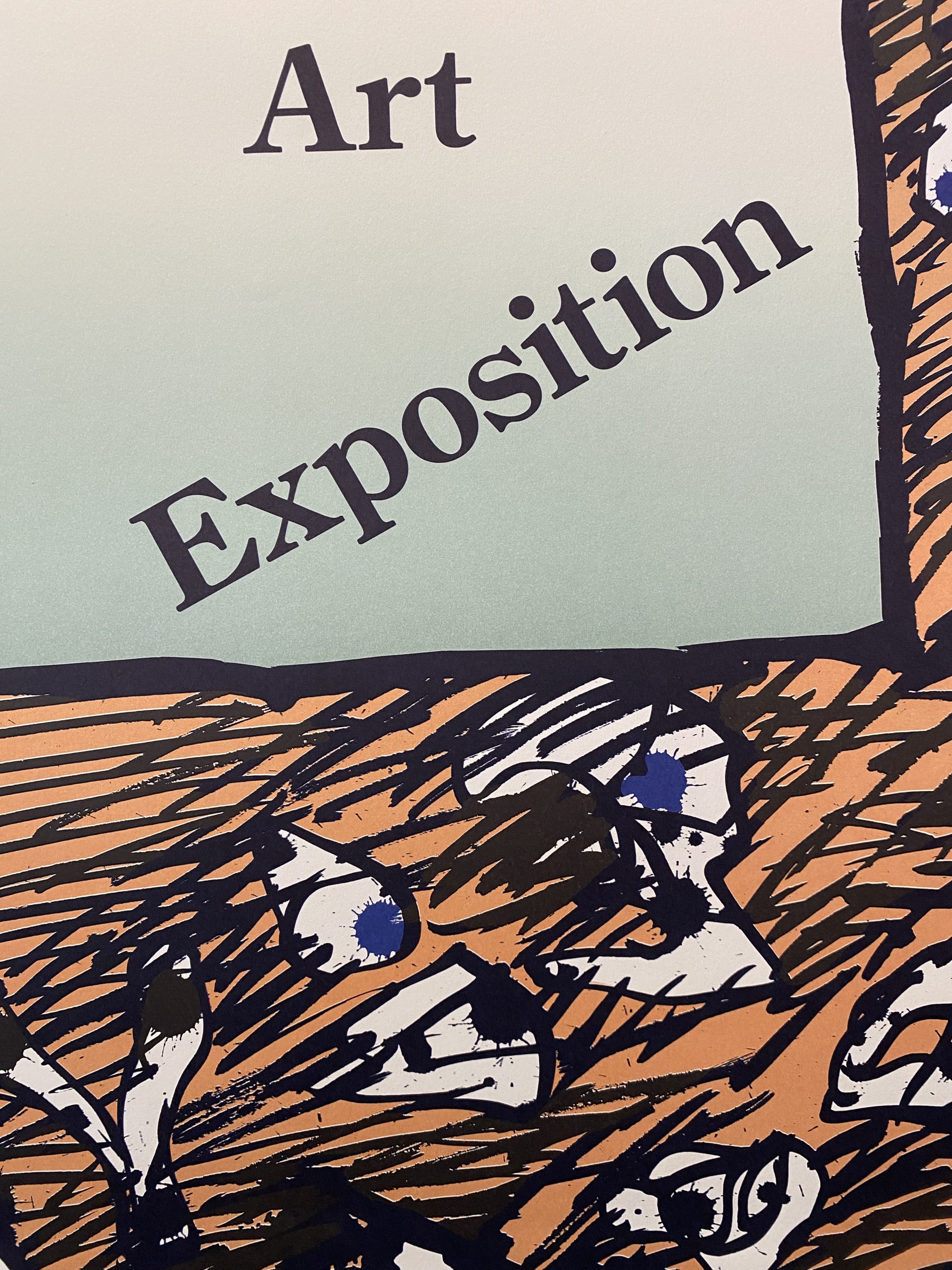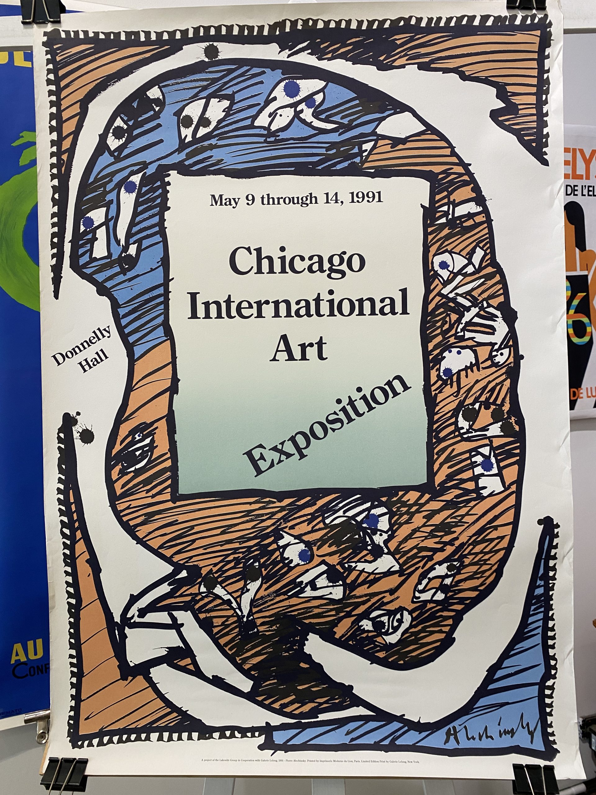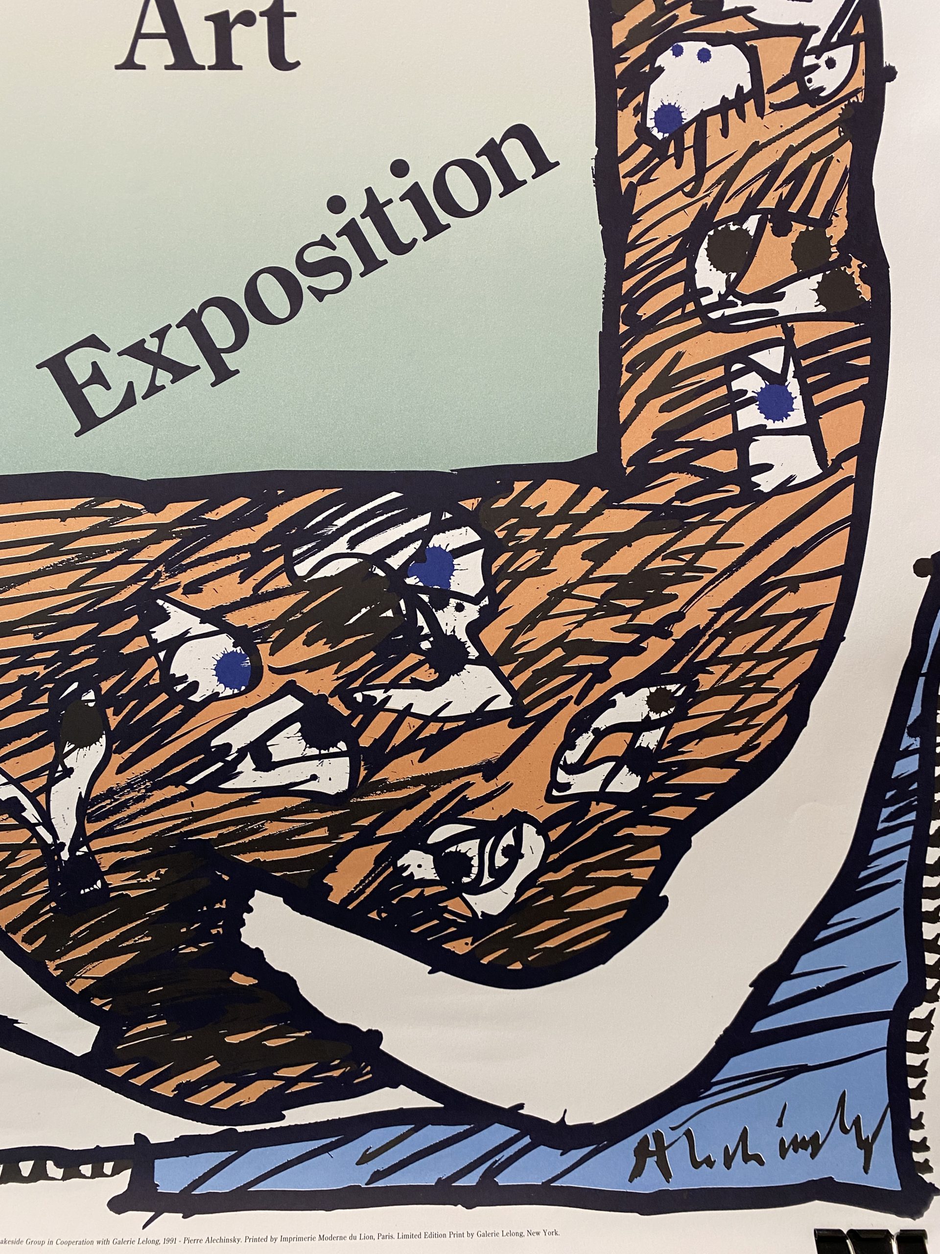 Pierre Alechinsky is a Belgian artist. He has lived and worked in France since 1951. His work is related to tachisme, abstract expressionism, and lyrical abstraction. This poster is advertising an exhibition in Chicago of International Art. This poster is un-linen backed and printed on thick paper.