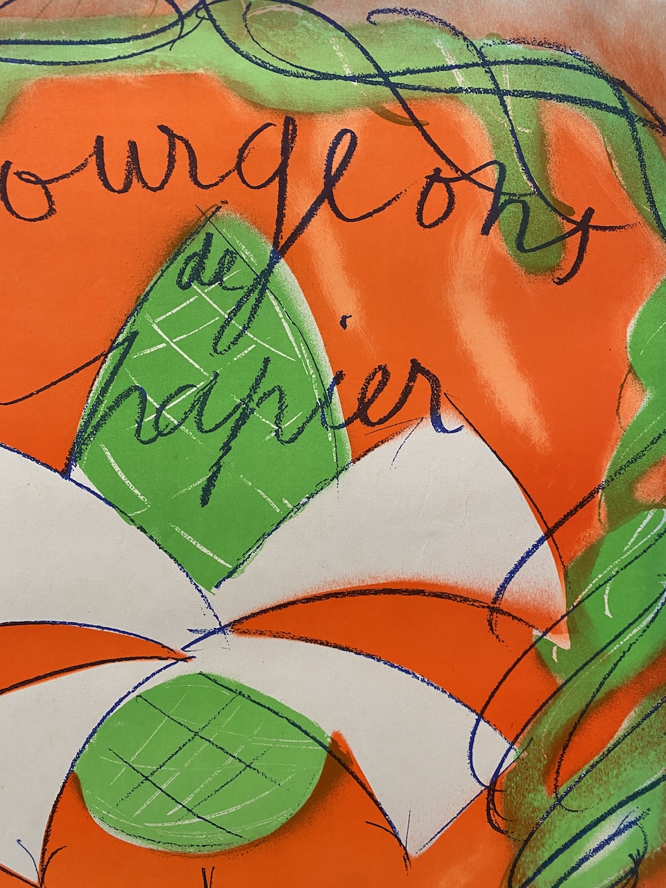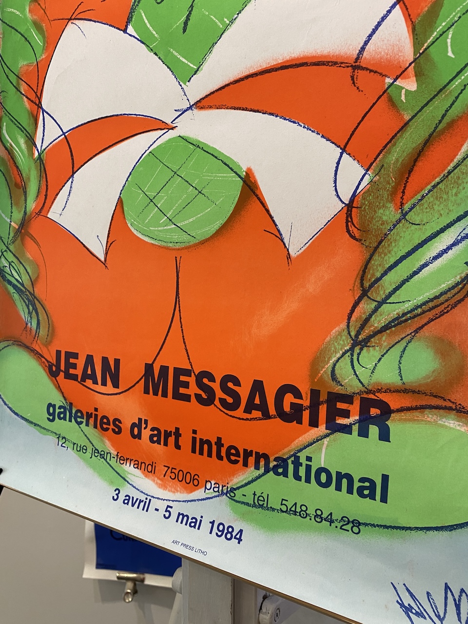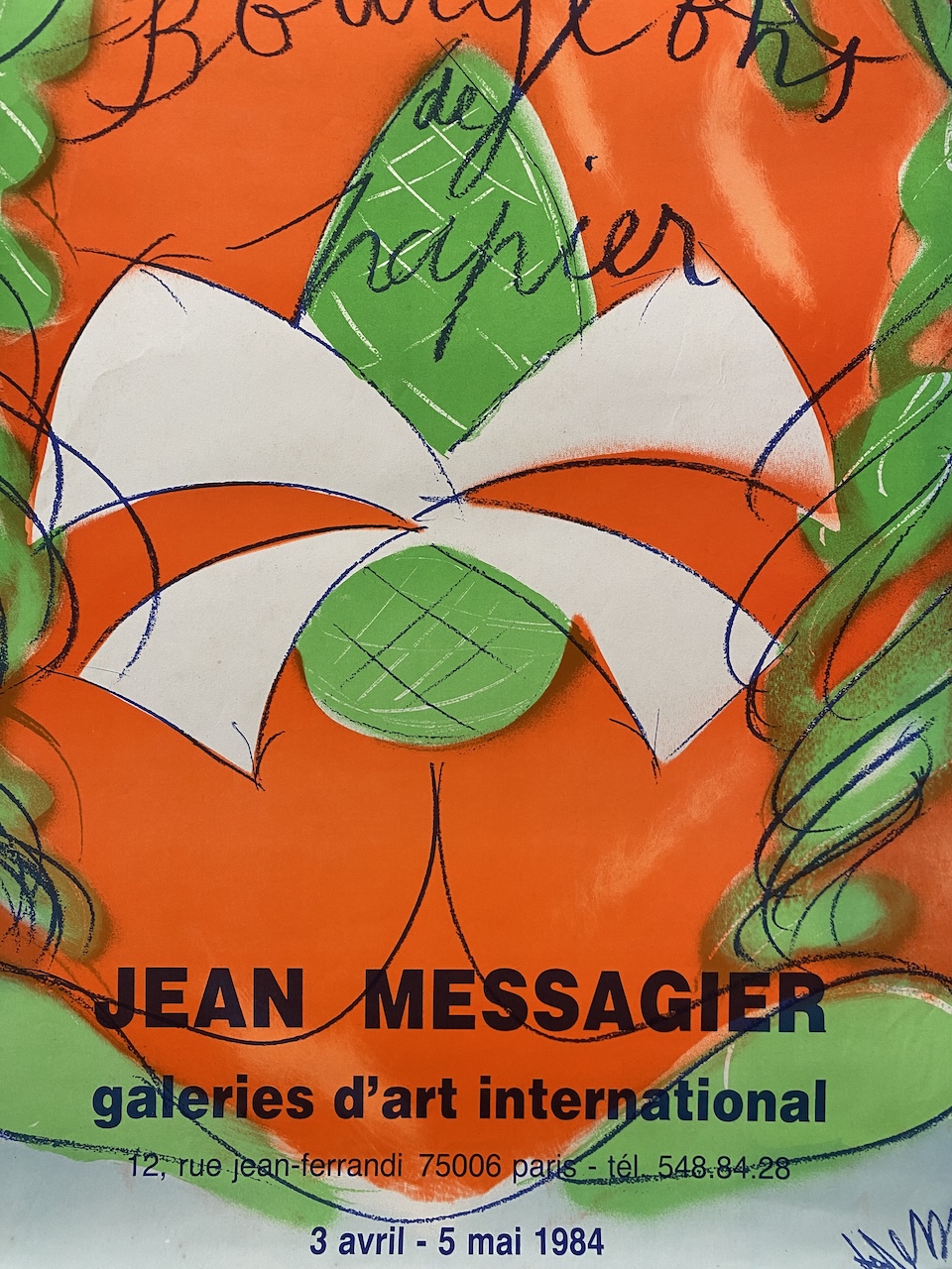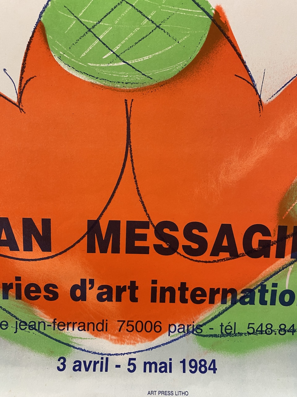 Jean Messagier was a French painter, sculptor, printmaker and poet. Jean Messagier had his first solo exhibition in Paris at Galerie Arc-en-Ciel in 1947. Messagier, beyond abstraction and beyond figuration, had immersed himself in the world of life and nature. His gesture is life, his colors impressions and sensations of nature. This is an original vintage exhibition poster from 1984. The colours are vibrant and the condition is excellent.