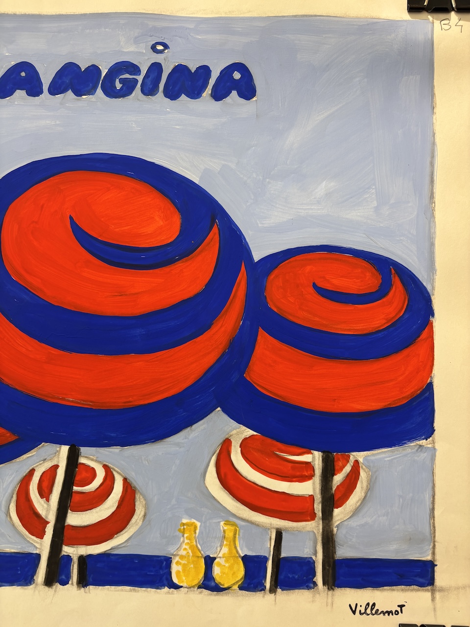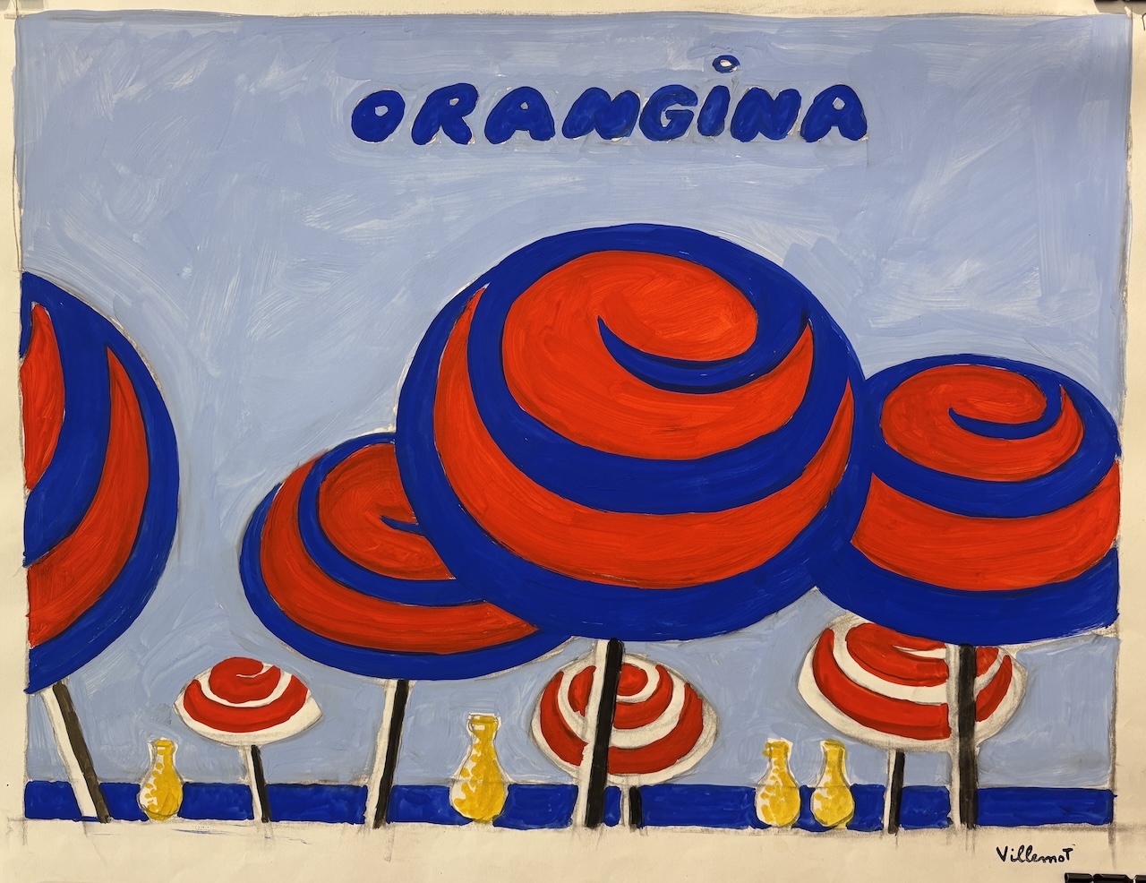 Original gouache study ‘Orangina Umbrella’ by Villemot
