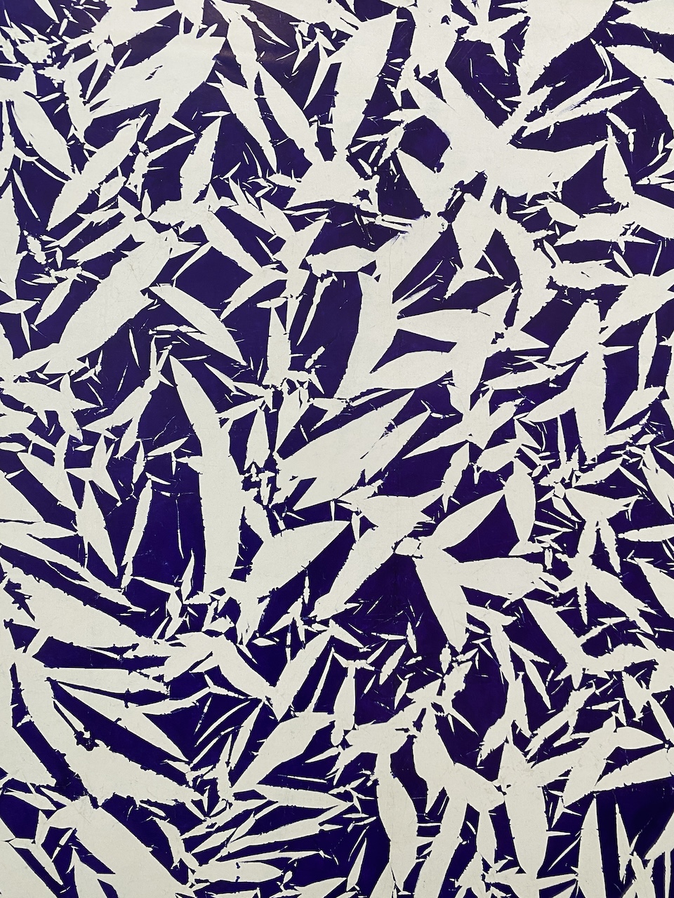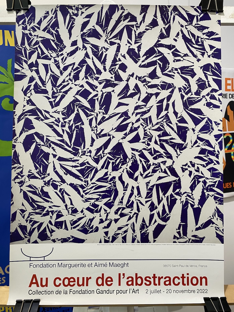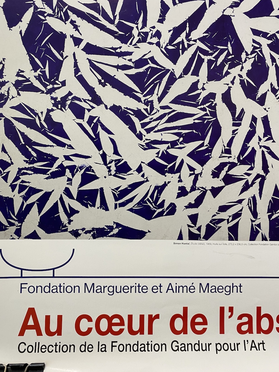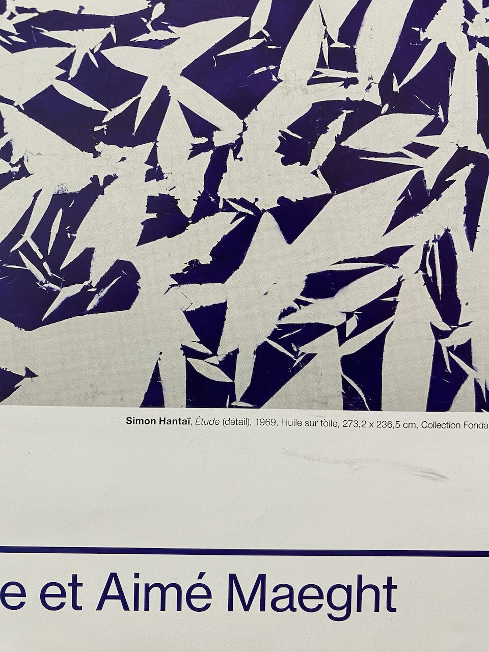 Known for his kaleidoscopic abstract works, Simon Hantaï (1922–2008) originated the technique of pliage (folding), in which a canvas is crumpled and knotted, uniformly painted over, and then spread out to reveal a matrix of alternations between pigment and ground. This is an exhibition poster from 2022.