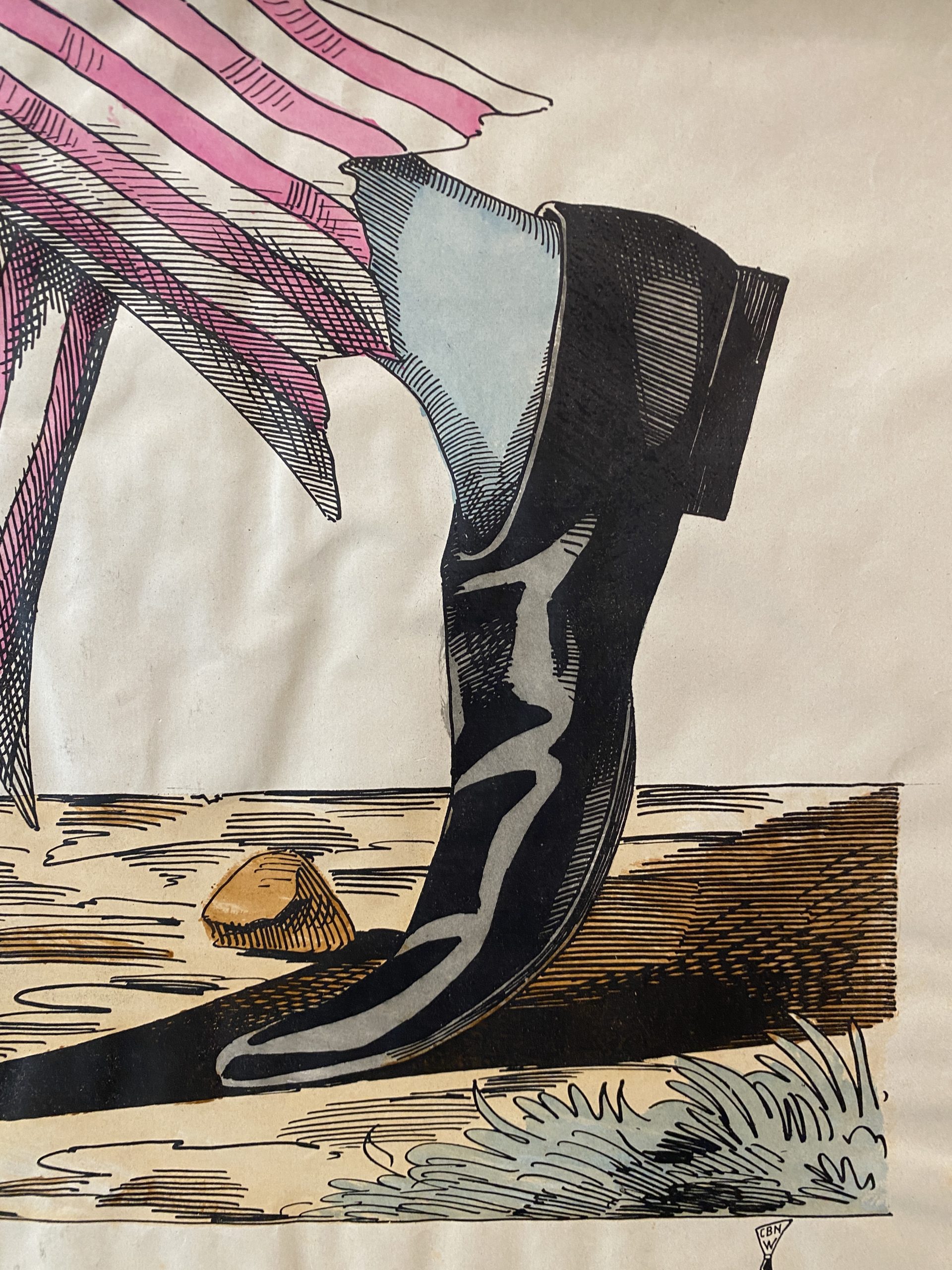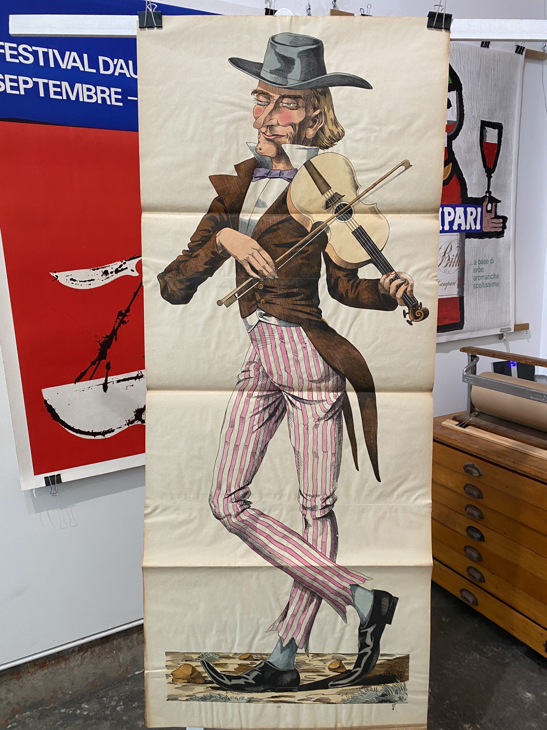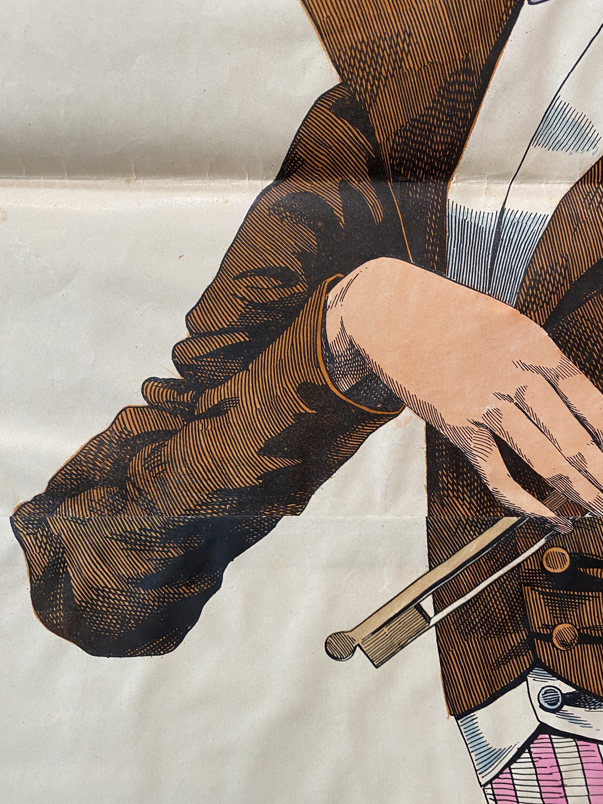 This poster was created in the 1880’s in the own of Wissembourg. Each poster in the series was created by the C. Burckardt printing firm in the 1880s. All posters in this series have been printed via stone lithography, in multiple panels. Many of these pieces were created before multi-colour lithography was developed.