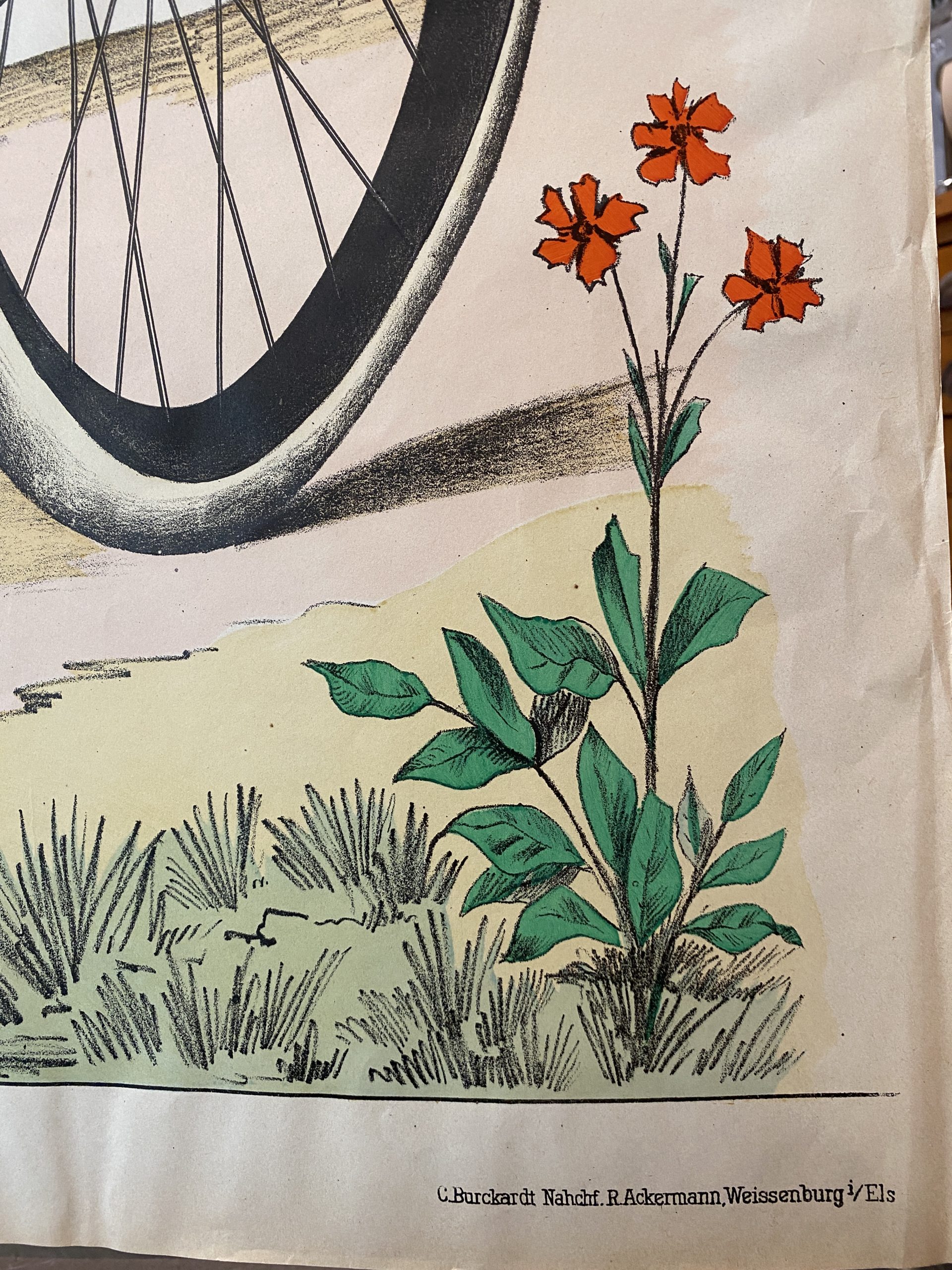 This poster was created in the 1880’s in the own of Wissembourg. Each poster in the series was created by the C. Burckardt printing firm in the 1880s. All posters in this series have been printed via stone lithography, in multiple panels. Many of these pieces were created before multi-colour lithography was developed.